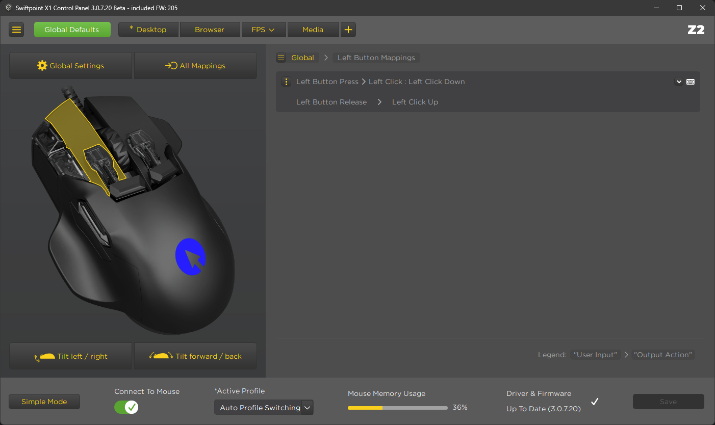 For some reason I cannot get the Z2 to click and drag across programs, it always "lets go" once another window is in focus. I have the left button configured correctly in the Global profile (press and release) and no other profiles change this behaviour. This only seems to happen with different programs, i.e having two Explorer windows open works as expected, but going from Explorer to Firefox releases the button during the transition. Below is the issue in action, using the Z2 first and another mouse second: