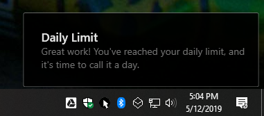 Unlike the other rest timers Daily Limit works over the fixed time-frame of a single day. So it lets you set a cap on the total amount of activity per day. This cap will not prevent you from continuing with your work, it will just let you know once you have reached your set limit.