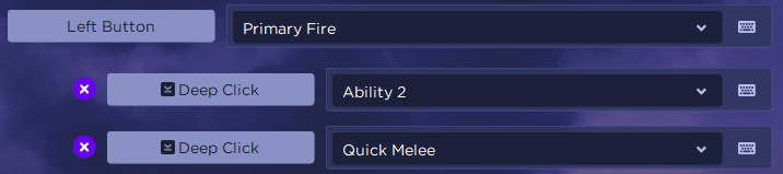 In the example below lightly tapping the Left Fingertip button will fire your weapon. But if you apply additional pressure after clicking it will also trigger an ability. Applying even more pressure will then follow the ability up with a melee attack.